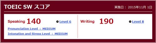 11月1日に受験したTOEIC SWの結果が本日発表された。 当日の記事はこちら。 TOEIC SW 2015年11月 - hidsgo’s diary 当日の予想は、S 150 W 190 。Sは急によくなることはなく、前回10月と同じ予想。Wは200を取りたいがミスっているので190の予想。 さて、結果…